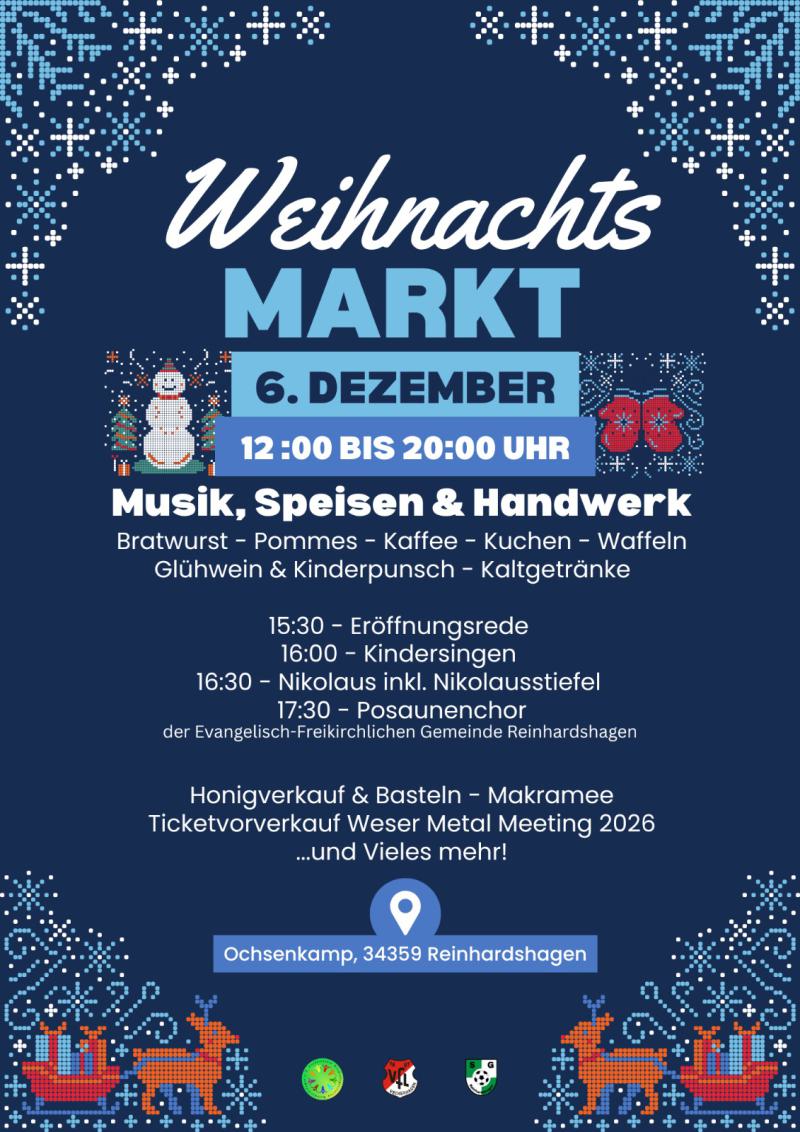 WEIHNACHTSMARKT AM OCHSENKAMP- Desweiteren können Tickets zum Super-Spar-Preis von 28 anstatt 30 Euro am 06.12.2025 auf dem Weihnachtsmarkt am Ochsenkamp in Reinhardshagen am Stand der Metal Crew erworben werden.